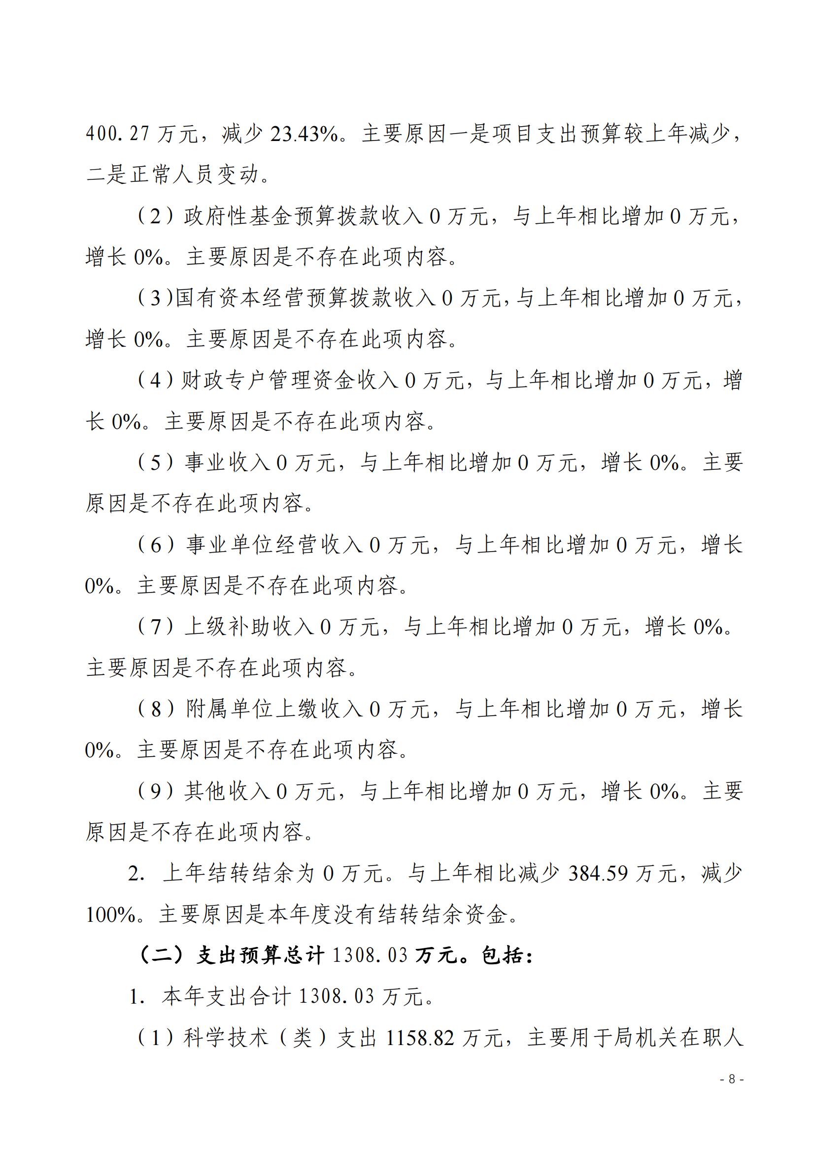 包头市科学技术局2023年度本级预算公开